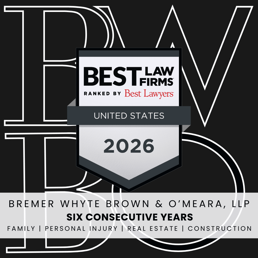 Bremer Whyte Brown & O’Meara, LLP is proud to announce its inclusion in the 2026 edition of Best Law Firms® in the United States, receiving national and regional rankings across multiple practice areas for the sixth consecutive year. National Tier 3 o Construction Law Regional Tier 1: Orange County o Family Law o Personal Injury Law...